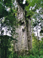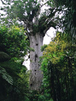 Von Omapere aus ging es über enge Strassen in die ein- drucksvolle Welt der subtropischen Regenwälder. Im Waipoua Kauri Forest wachsen neben den Kauri-Baumriesen auch Rimu, Towai und andere endemische Pflanzen. Die Hauptattraktion ist der "Herr des Waldes" (Tane Mahuta), ein Kaurigigant von 56 m Höhe und 13 m Umfang. Sein Alter wird auf 1200 Jahre geschätzt. Die Kauri-Fichte gilt als eine der größten Baumarten der Erde.