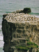 Unsere Route führte weiter über den Highway 12 nach Dargaville und weiter bis zum Muriwai Beach. Hier gibt es von September bis Februar das außergewöhnliche Schauspiel einer festländischen Tölpel-Kolonie zu beobachten.