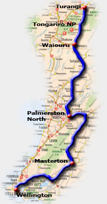Von Turangi ging es weiter über die Dessertroad nach Wellington. Dabei ging es vorbei an schnee- bedeckten Vulkankegeln, dem Tongariro Nationalpark, Weide- landschaften und durch Täler die in sattem grün lagen. Wir legten hier und da ein paar Fotostops ein, machten einen kleinen Ab- stecher in eine Schlucht und erreichten gegen Nachmittag die Hauptstadt Neuseelands.